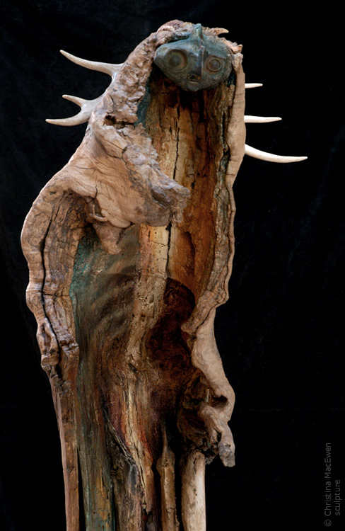 stoneware, raku fired stoneware, antler, Manitoba maple, pine, pigmentht. 5'8"