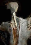 stoneware, white stoneware, wood, copper, linen, pigmentht. 6'
