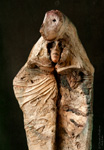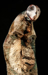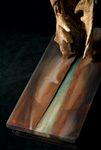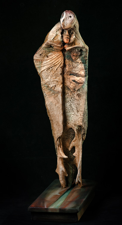 raku, stoneware, copper, linen, pigments, wood ht. 30"