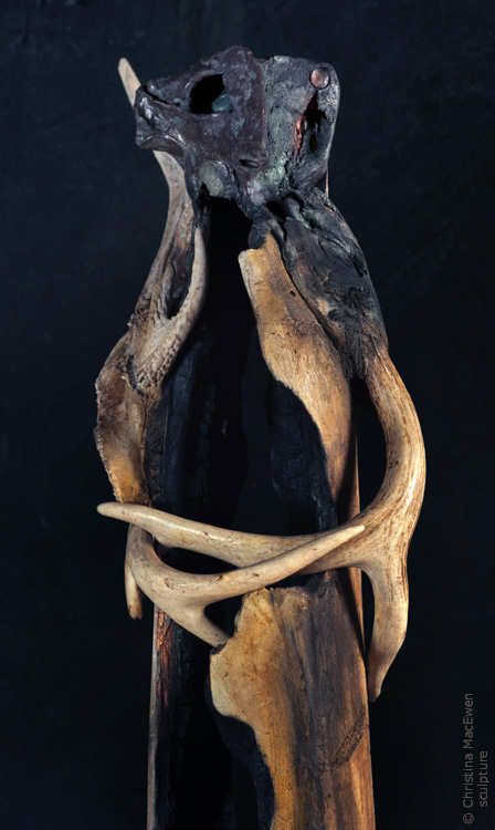 raku, stoneware, burnt tree, mixed media, pigments