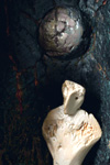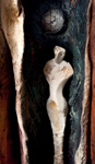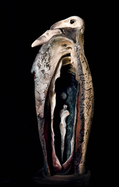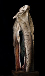 smoked porcelain, stoneware, pigments, woodheight 25"